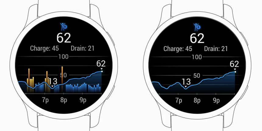 Идеята на тази функция е доста проста и практична – да изрази енергийното ниво на тялото по скала от 0 до 100. В изчислението най-често влизат променливи като спортна активност, стрес, качество на съня и др.